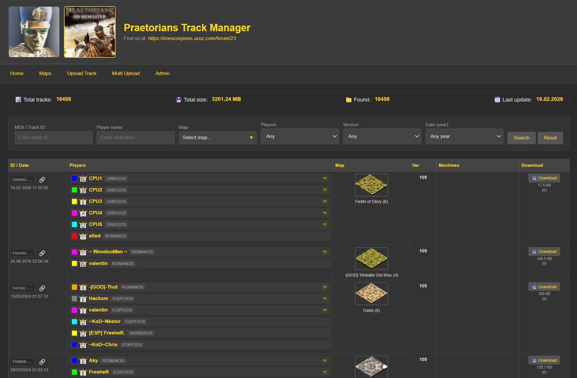А вообще со мной тут намедни связался военный комиссар Nestor и попросил помочь проверить состав (ну и заодно восстановить трекер, раз форум нельзя. Оказывается Ракондарк тоже закрыл сайт и трекер в тот же год...). Собственно, я это и сделал: http://secpraetorians.shn-host.ru/ (пока все простенько, вроде работает. Домен отдельный не покупал, может и не нужен проект сейчас будет никому - поэтому пока в тестовом режиме. Но вроде все работает...).